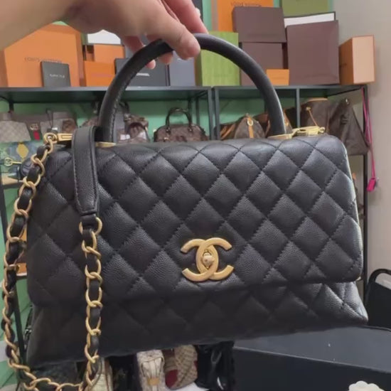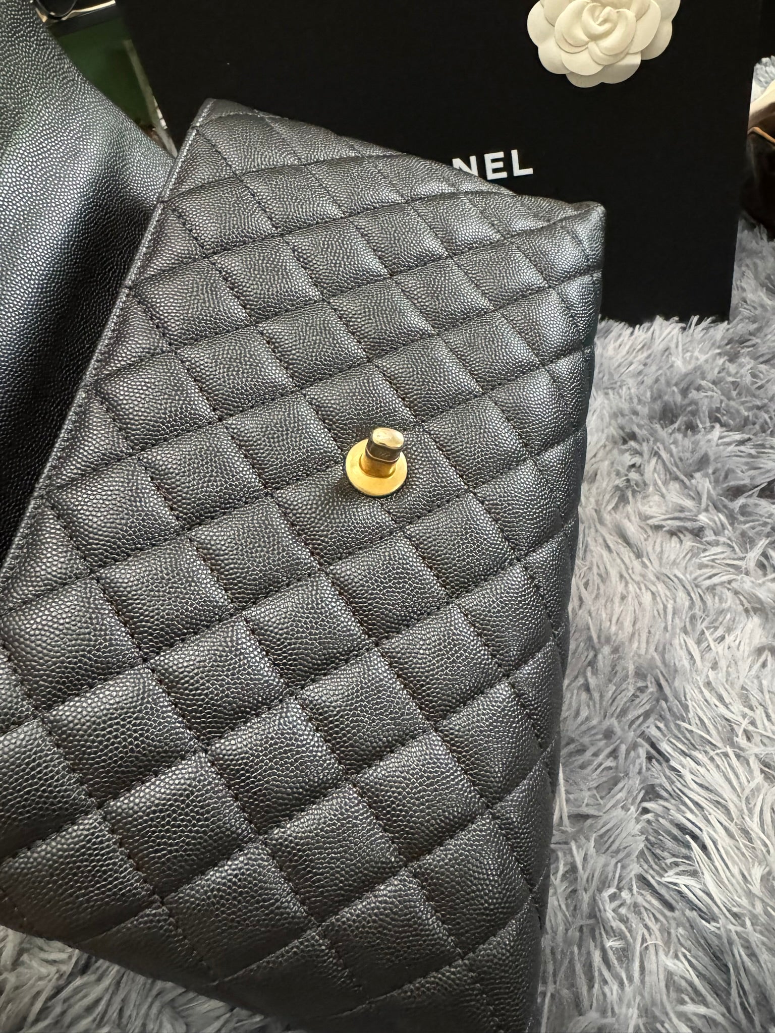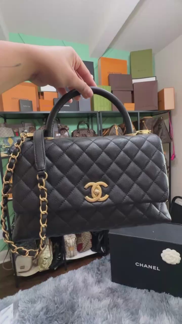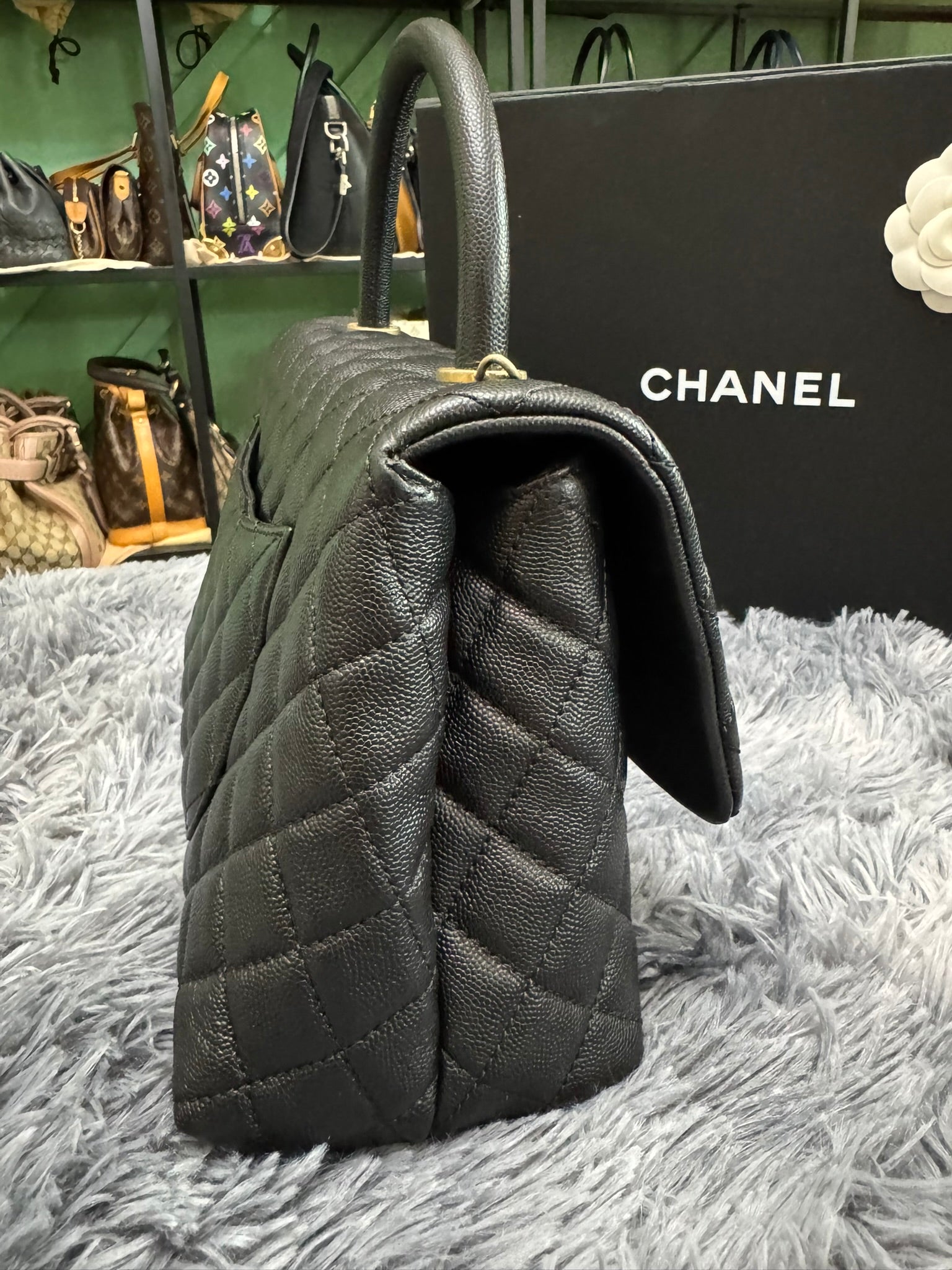 The Chanel Medium Top Handle in black caviar with gold hardware is a refined, versatile staple that brings structure, elegance, and iconic Chanel appeal to any collection.