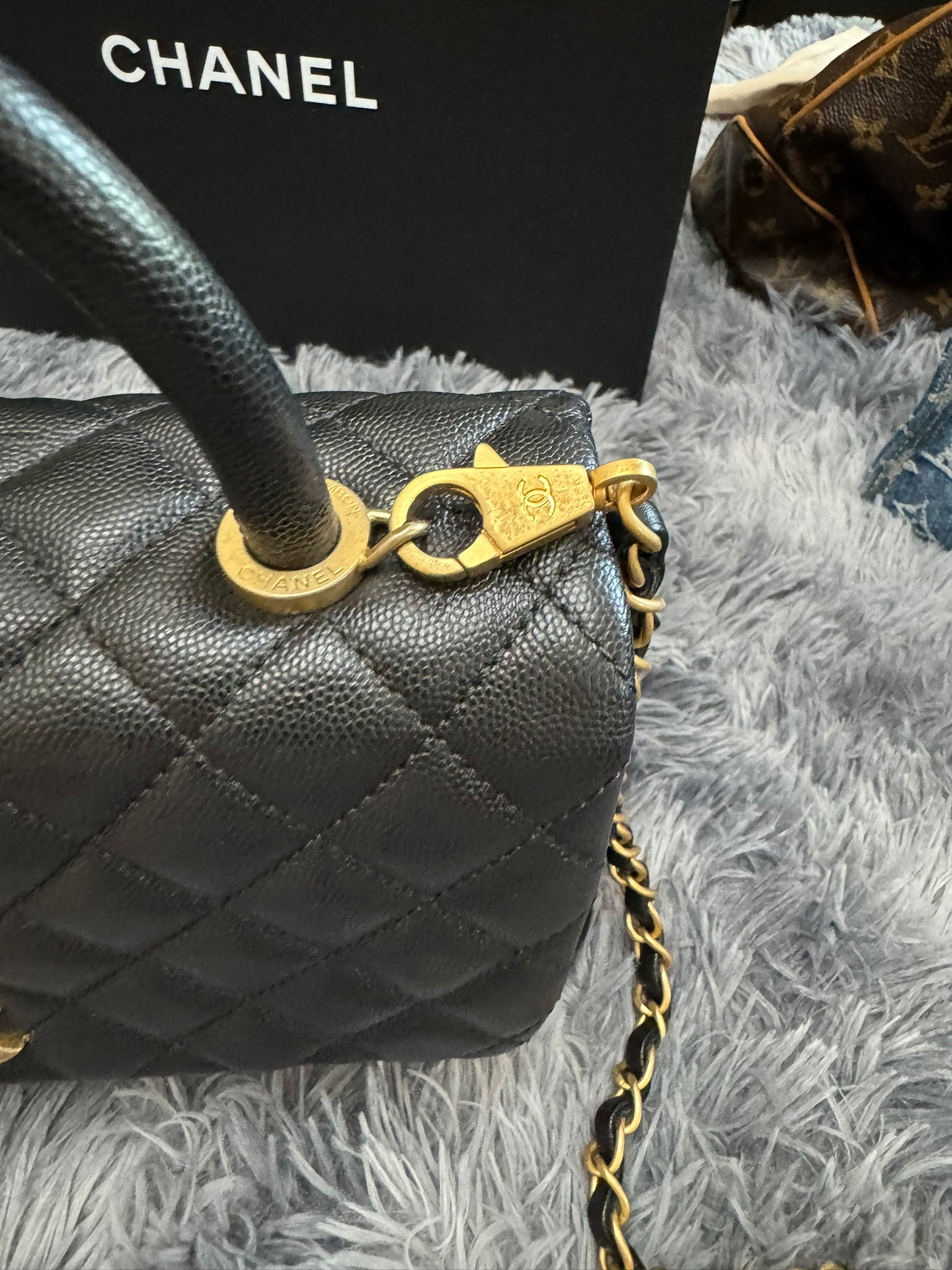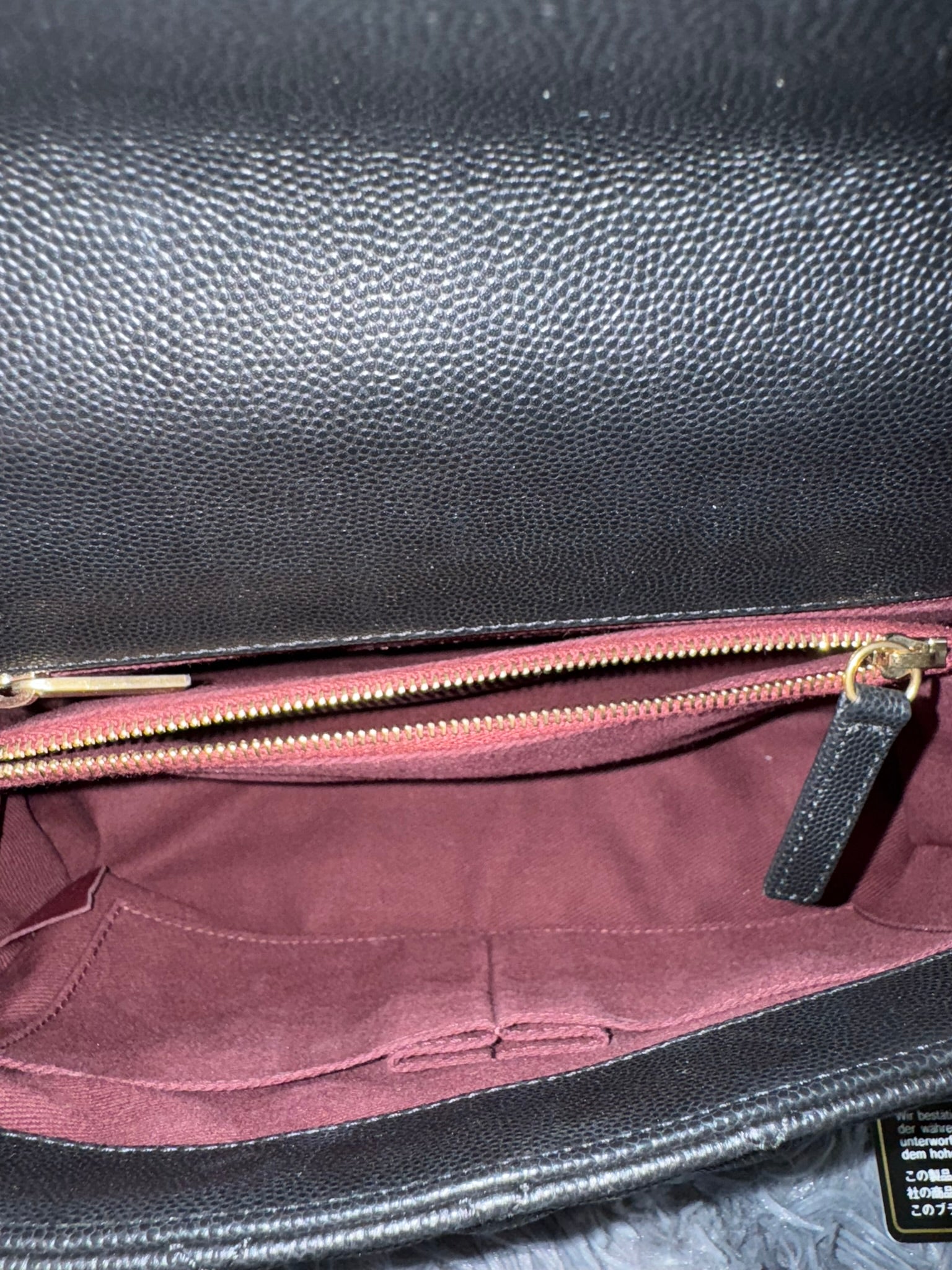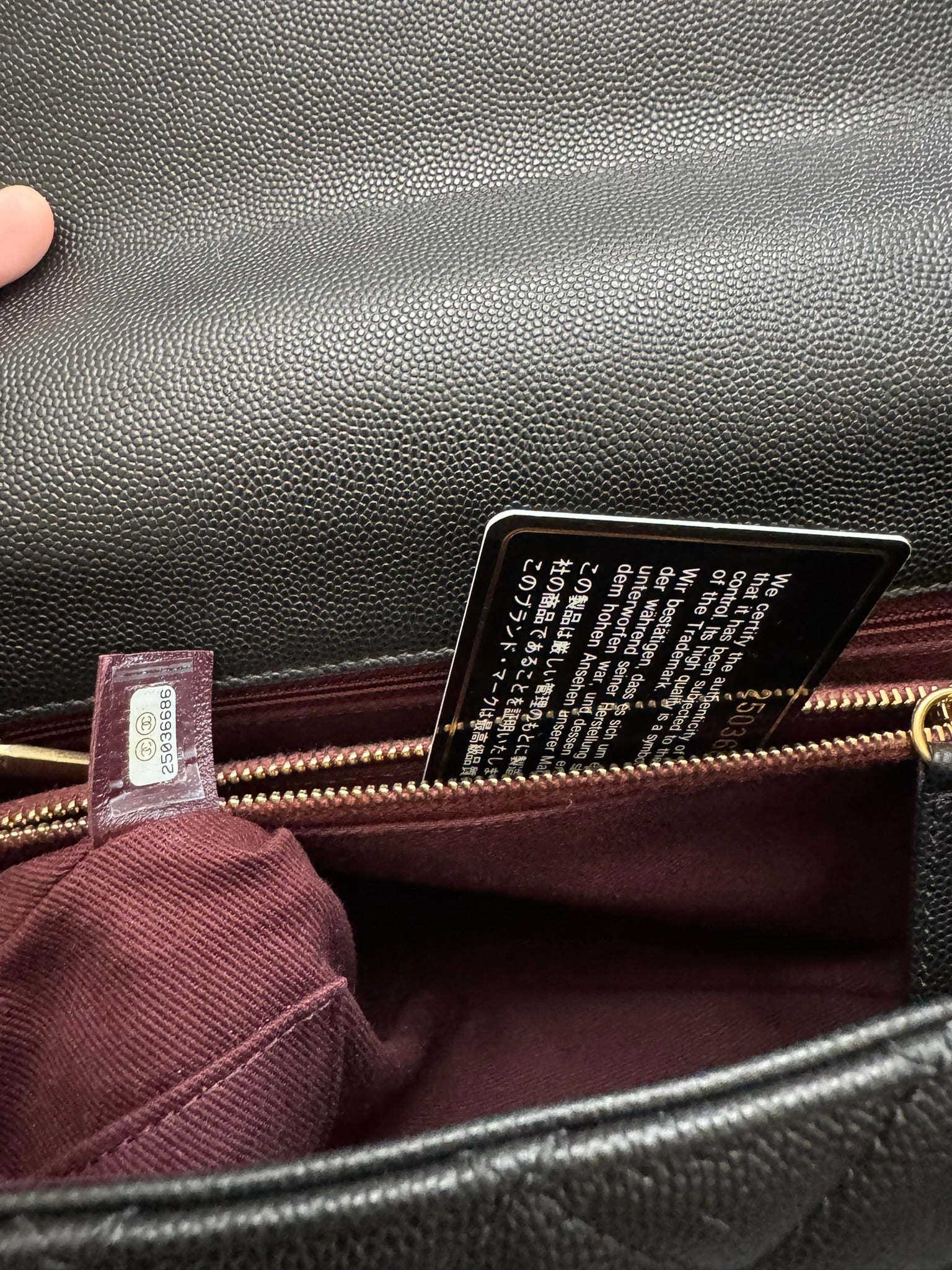 The Chanel Medium Top Handle in black caviar with gold hardware is a refined, versatile staple that brings structure, elegance, and iconic Chanel appeal to any collection.