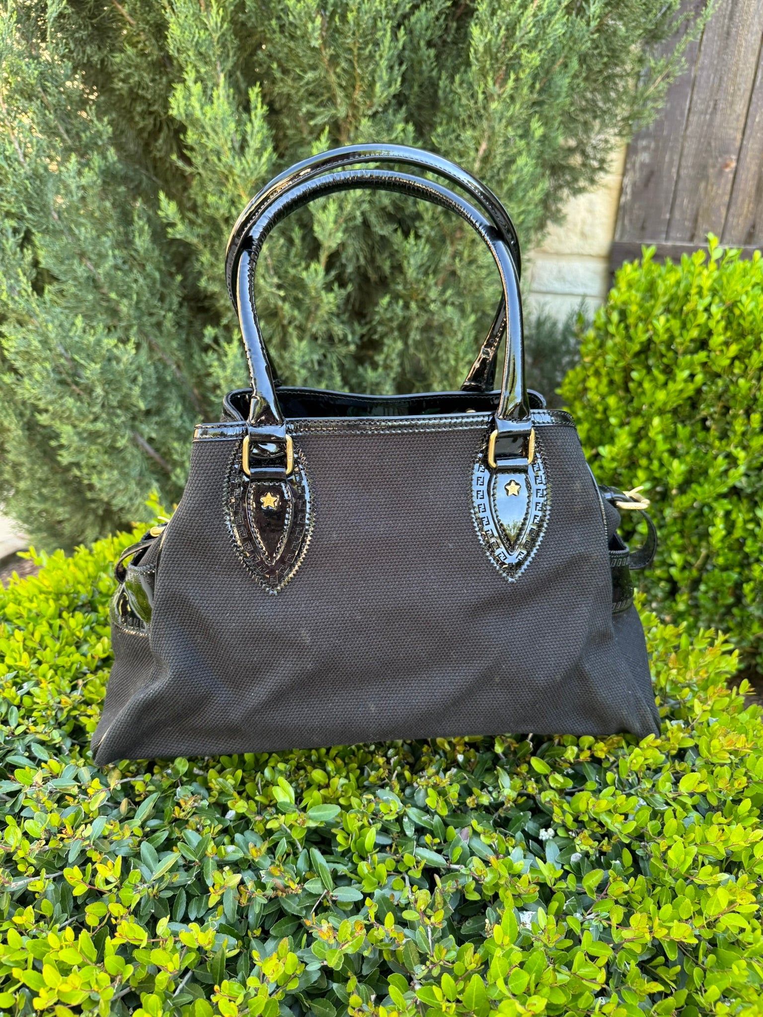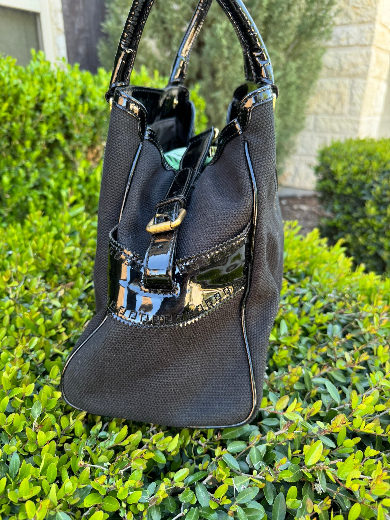 The Fendi Small Bag Du Jour in black canvas is a chic and collectible handbag, combining Italian craftsmanship with modern edge. A rare and edgy Fendi piece, ideal for fans of compact, structured bags with attitude that works as a day bag with personality or a night-out statement piece