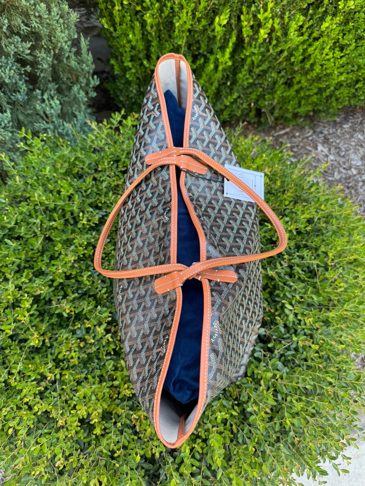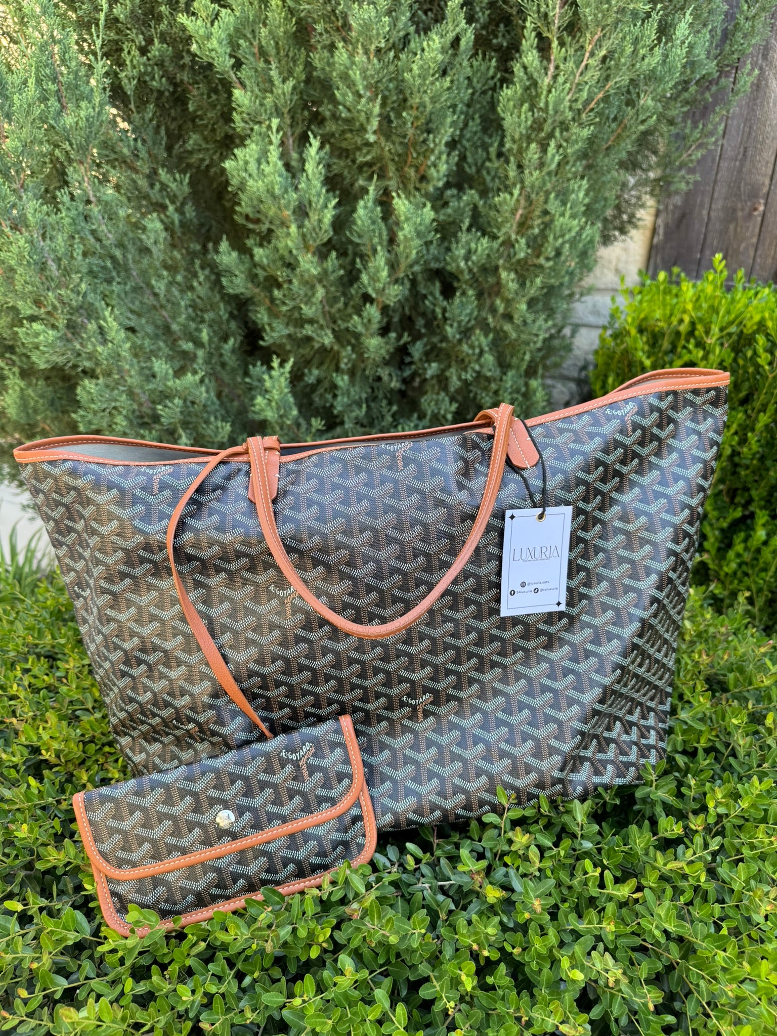 The Saint Louis GM is Goyard’s most recognizable tote—ultralight, foldable, and highly functional. Crafted in the house’s signature Goyardine canvas with contrasting gold leather trim, this oversized version offers generous space for travel, work, or everyday carry.