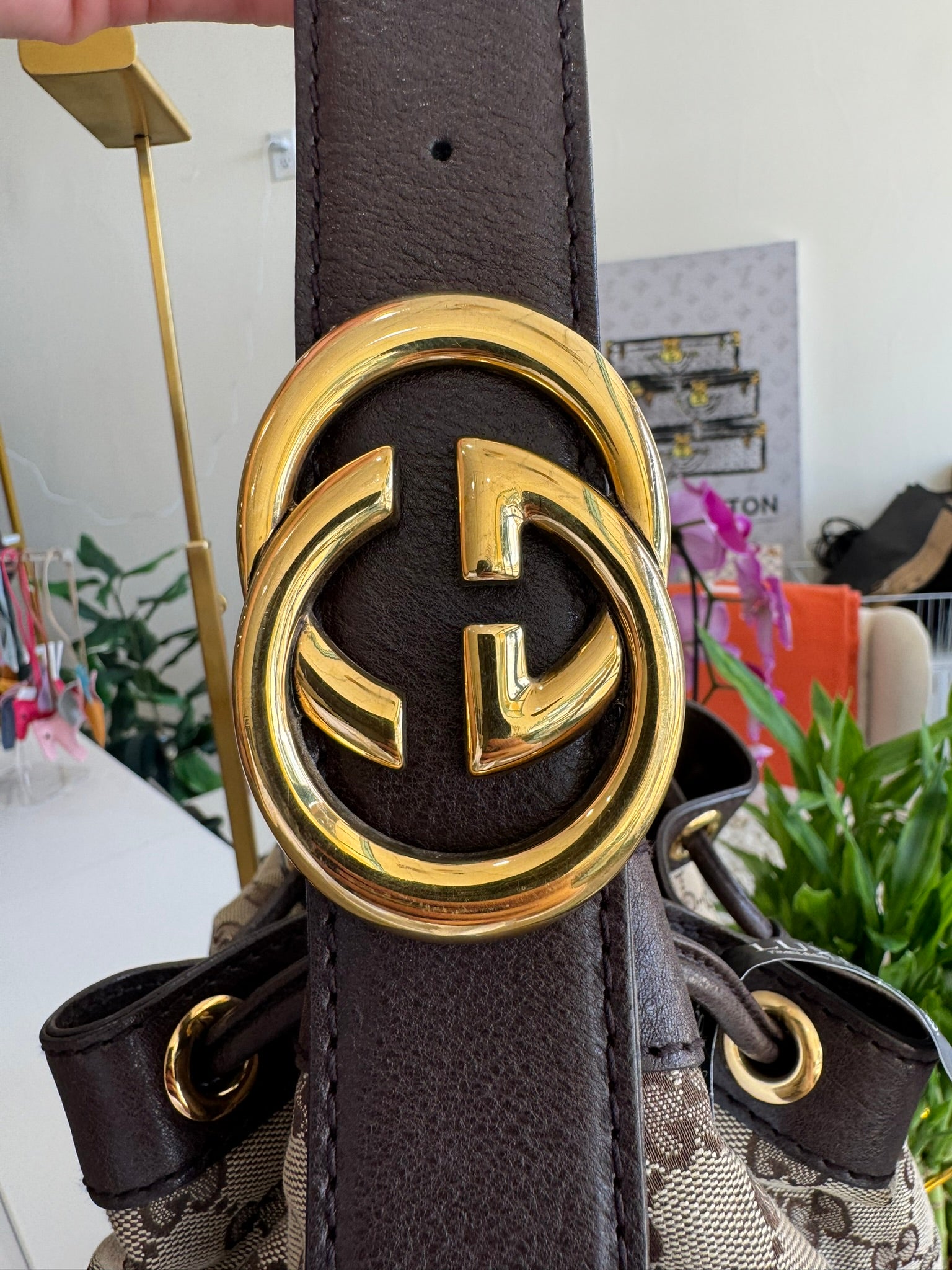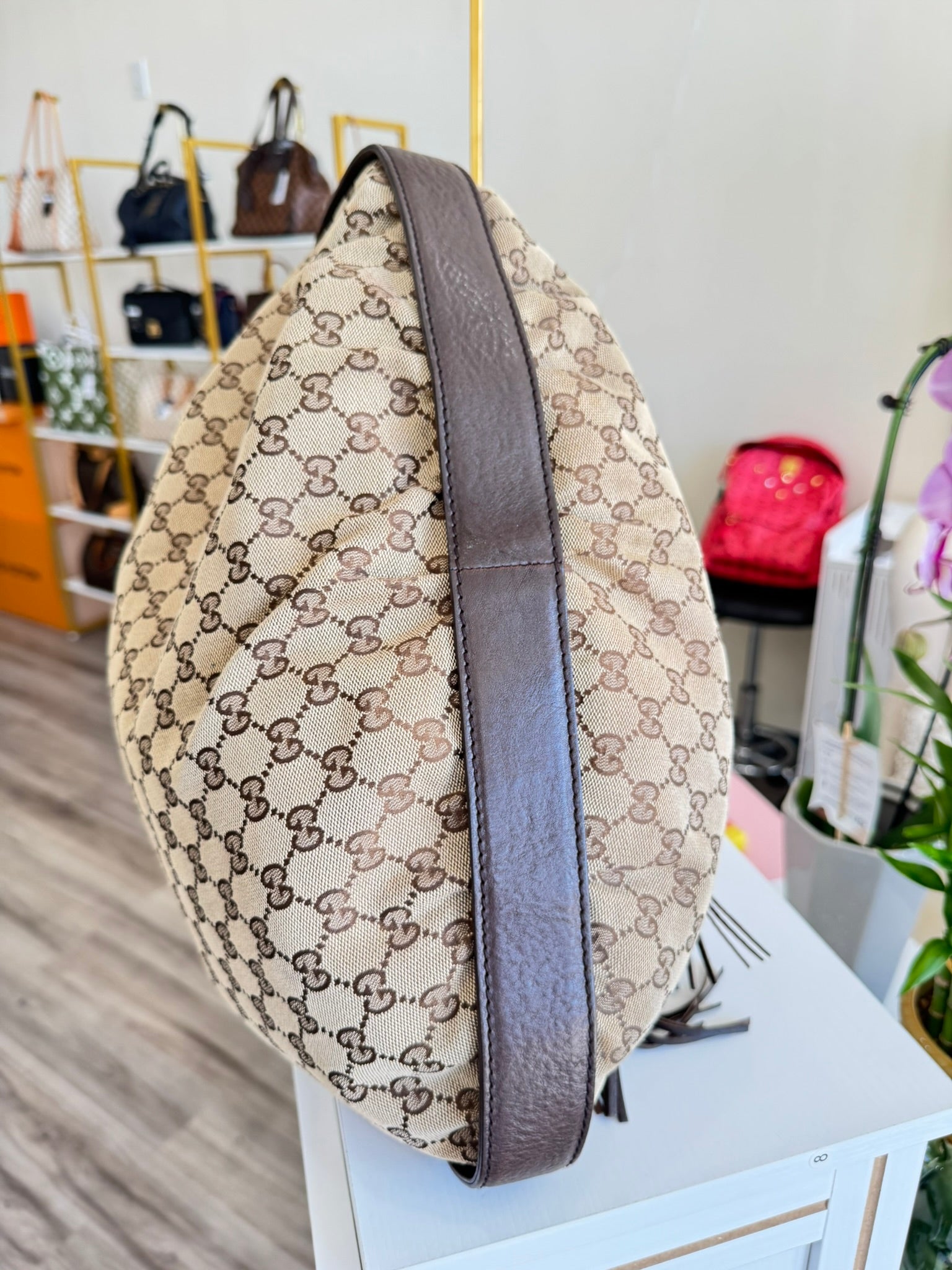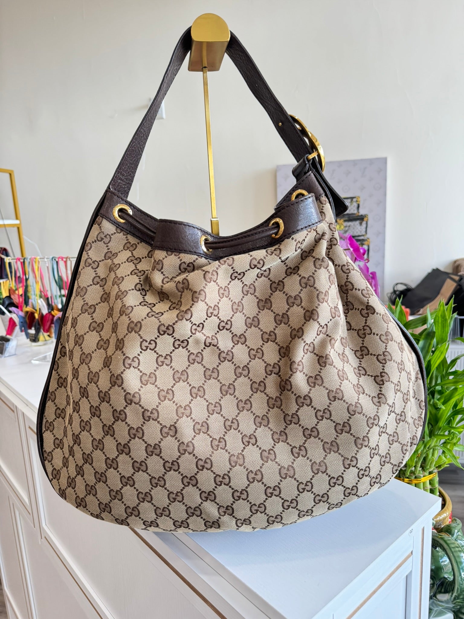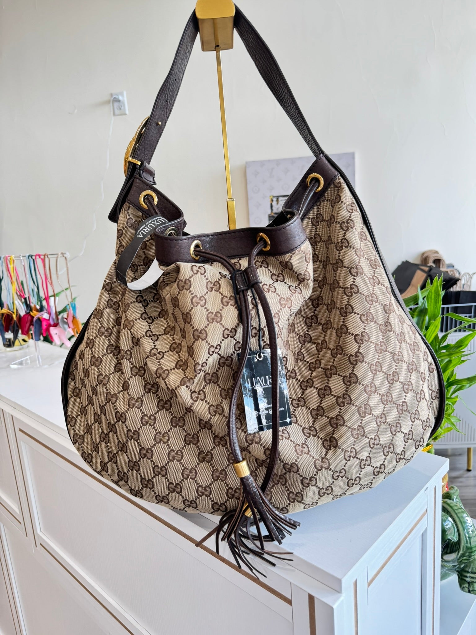 Gucci GG Drawstring Hobo Bag in Monogram Canvas