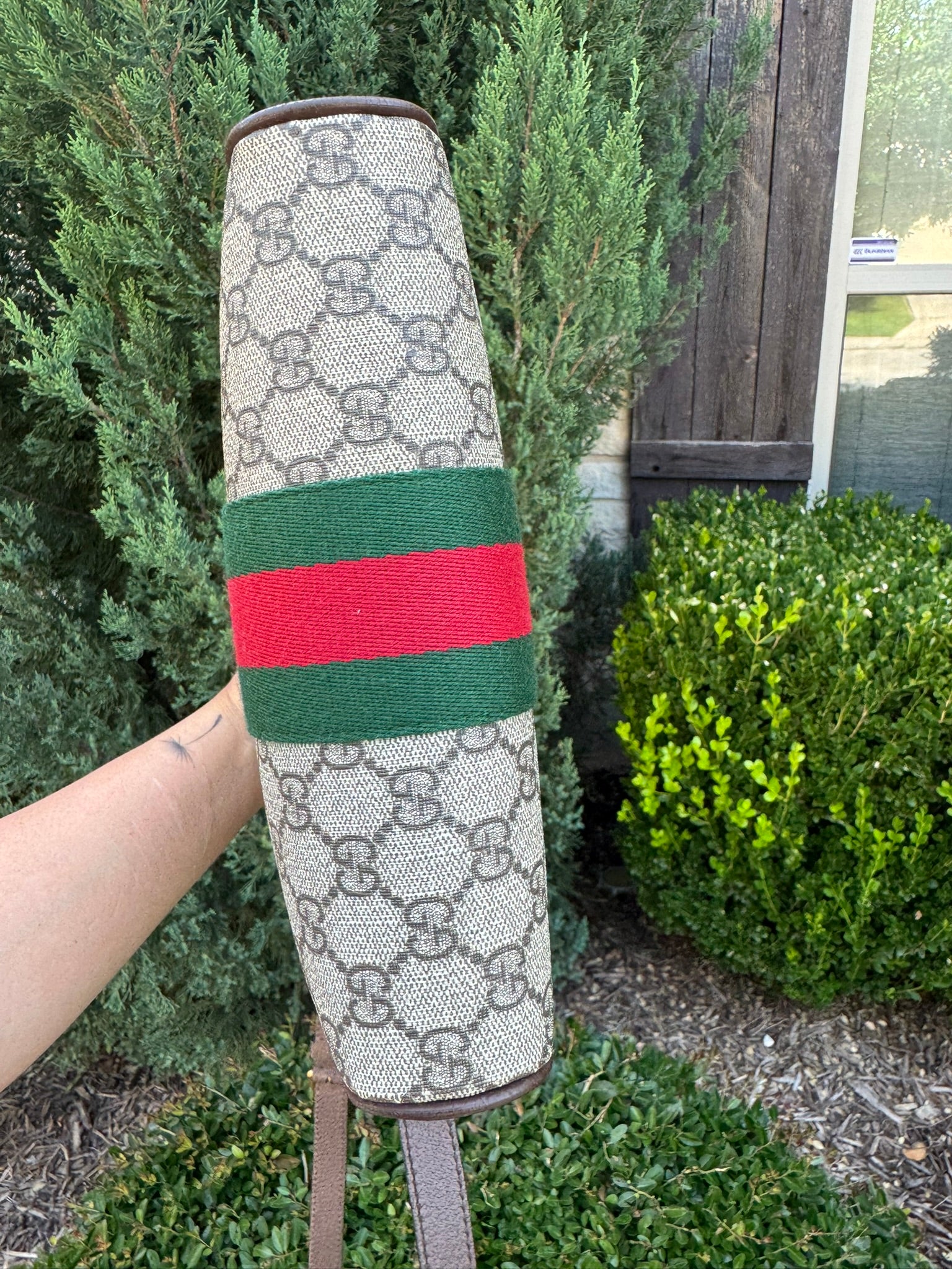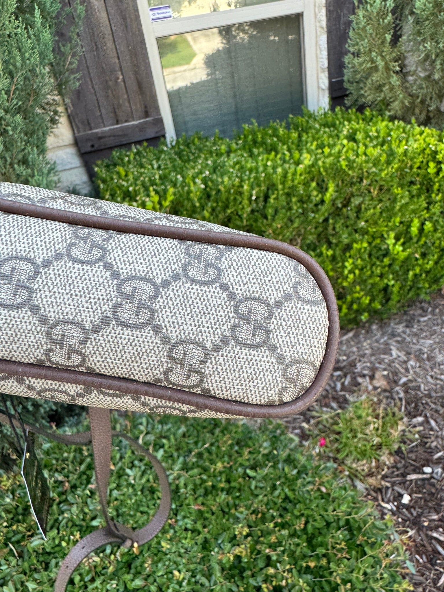 The Gucci Ophidia Small Messenger Bag is a sleek, hands-free design that blends vintage inspiration with modern functionality. Made from the brand’s signature GG Supreme coated canvas, it features brown leather trim, the green and red Web stripe, and gold-tone hardware, including the classic Double G emblem. Compact yet roomy enough for daily essentials, this crossbody is perfect for on-the-go styling.