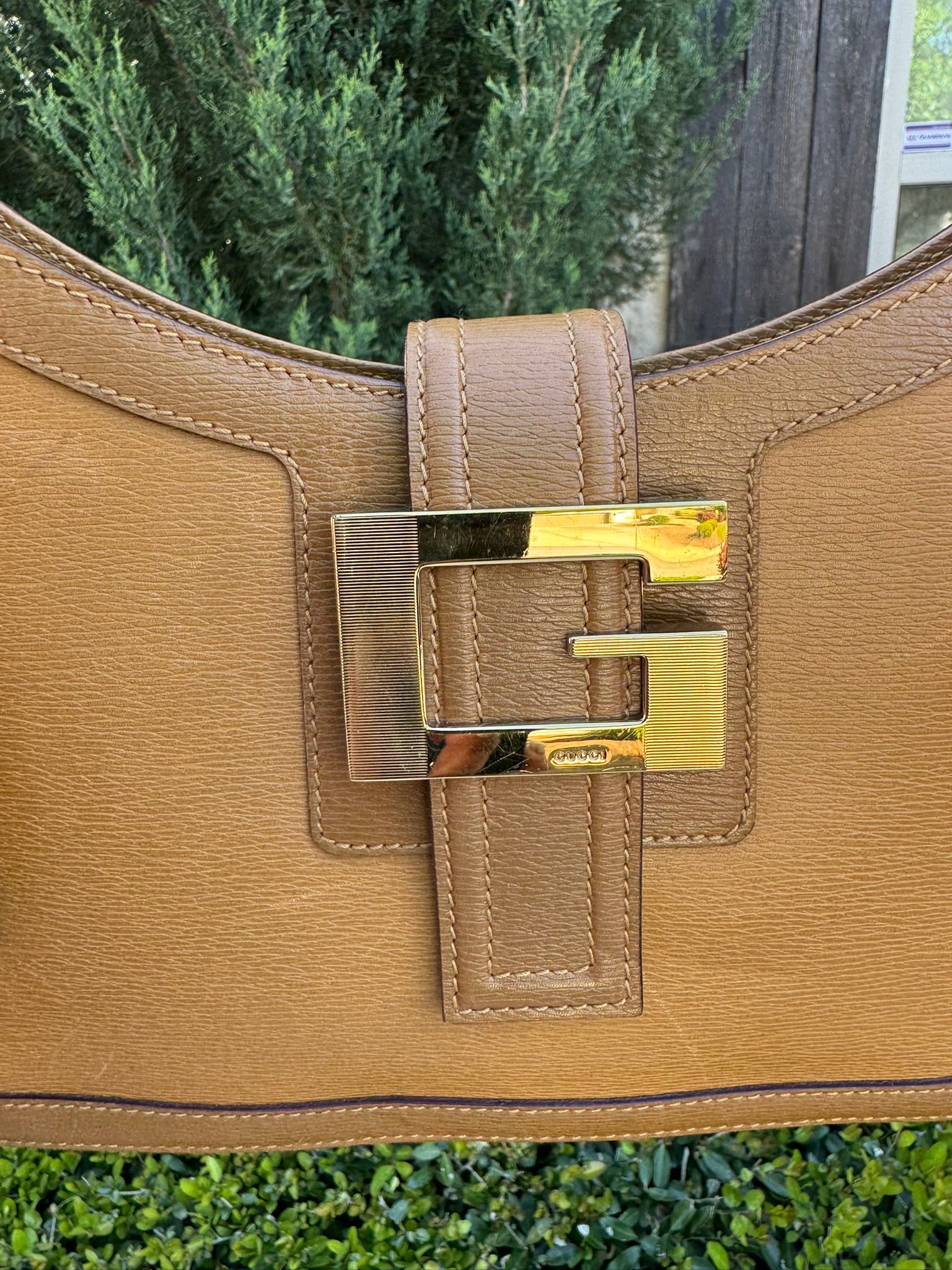 The Gucci G Buckle Shoulder Bag is a refined vintage staple, perfect for anyone seeking a piece of Gucci history with lasting style. It is refined, structured shoulder bag with vintage charm and ideal for collectors or anyone who appreciates minimalist Gucci design. A versatile piece that elevates both casual and polished outfits