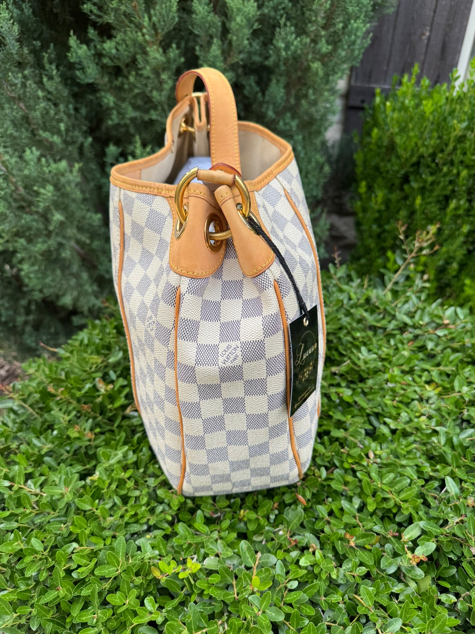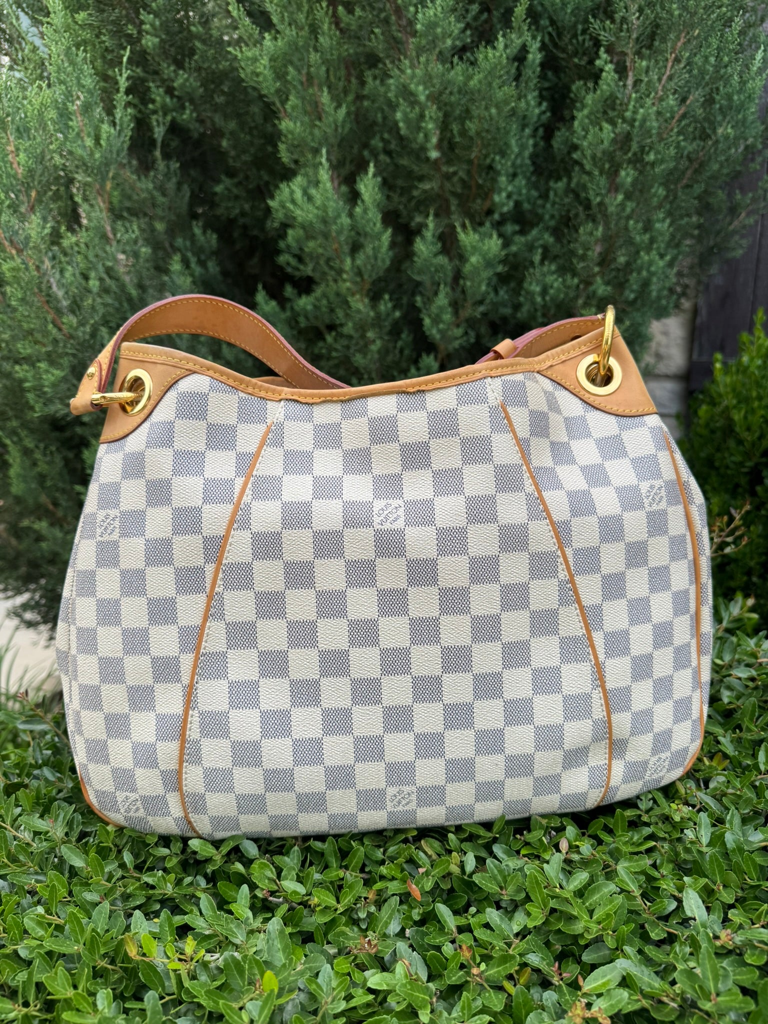 The Louis Vuitton Galliera PM in Damier Azur is a beautifully structured shoulder bag with a soft, feminine shape and roomy interior—perfect for everyday wear. This popular model features pleated canvas, a gold-tone nameplate, and an adjustable vachetta leather shoulder strap that fits comfortably on the shoulder.