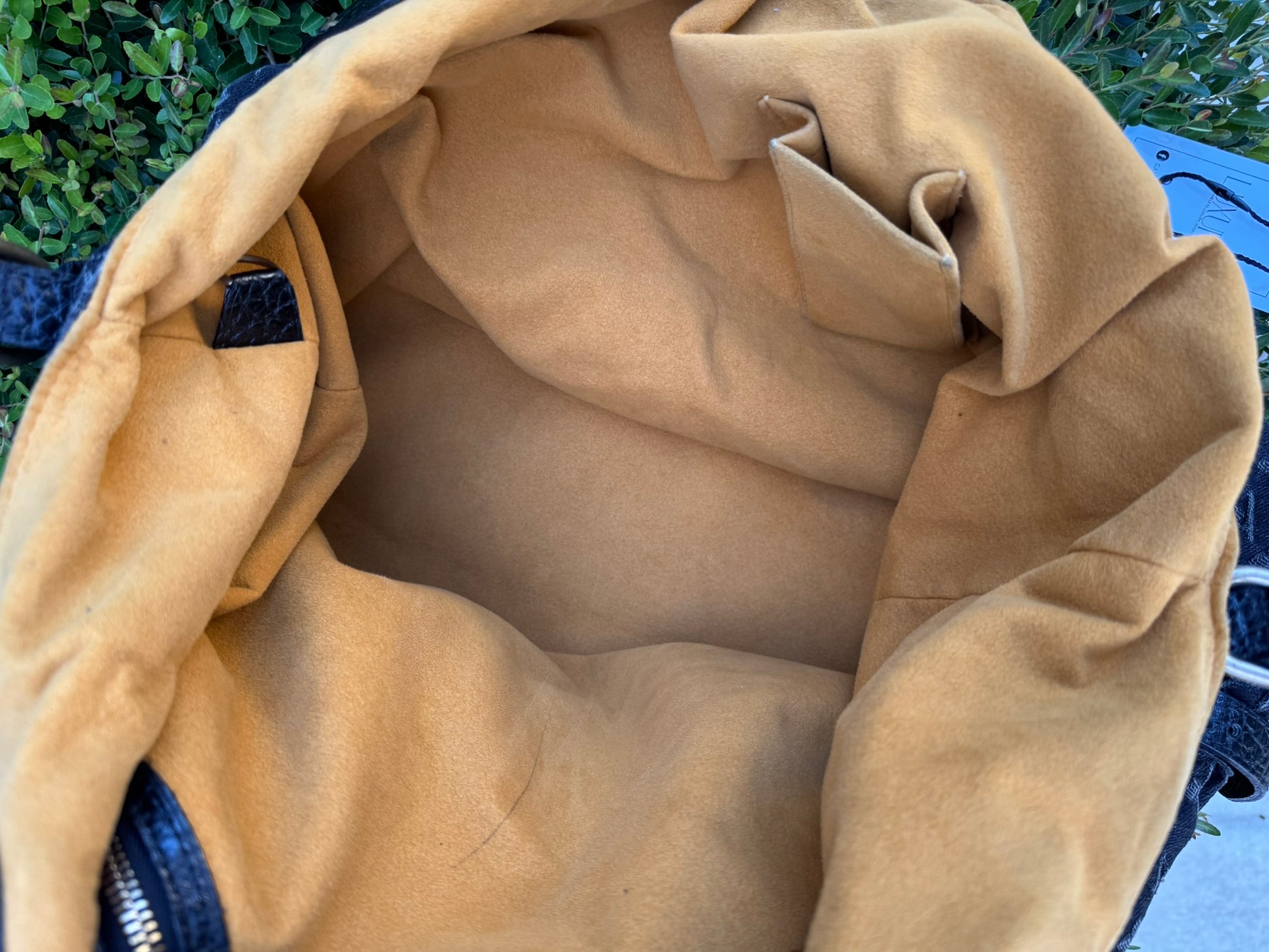 The Mahina XL in Black Denim is a rare, elevated casual tote—ideal for collectors or those who want to carry something roomy, soft, and distinctive.
