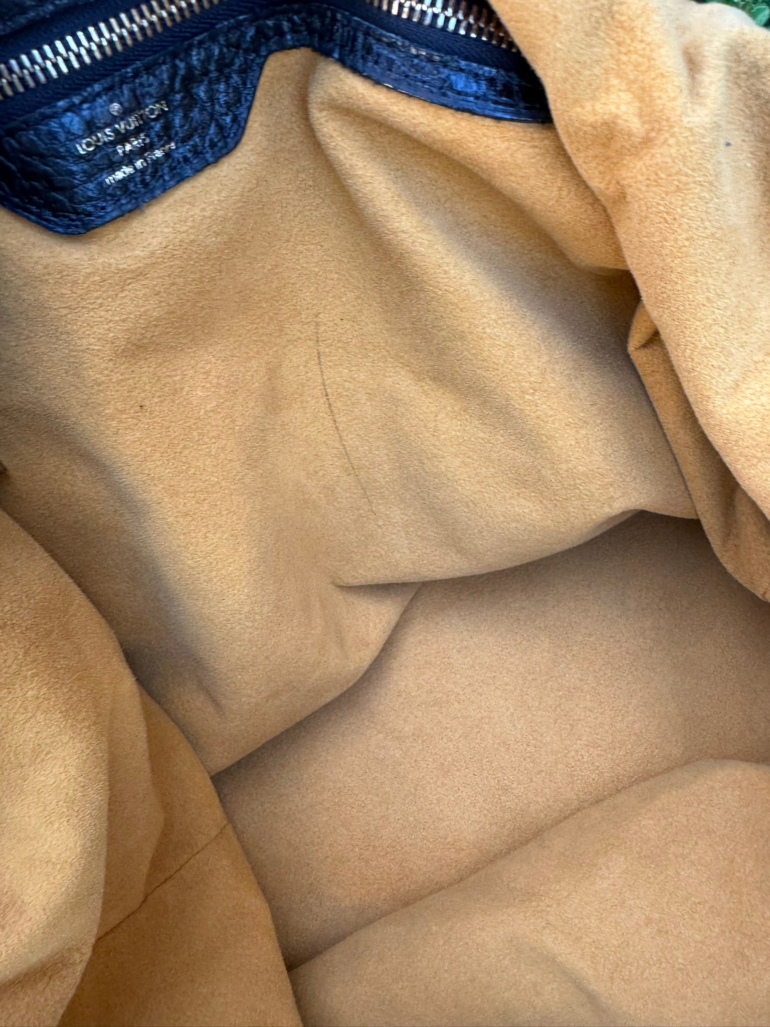 The Mahina XL in Black Denim is a standout piece from Louis Vuitton’s limited releases, combining the relaxed texture of denim with the elegance of the perforated Mahina Monogram pattern. Spacious and effortlessly stylish, it features a slouchy, oversized silhouette with subtle details that elevate it from casual to refined.