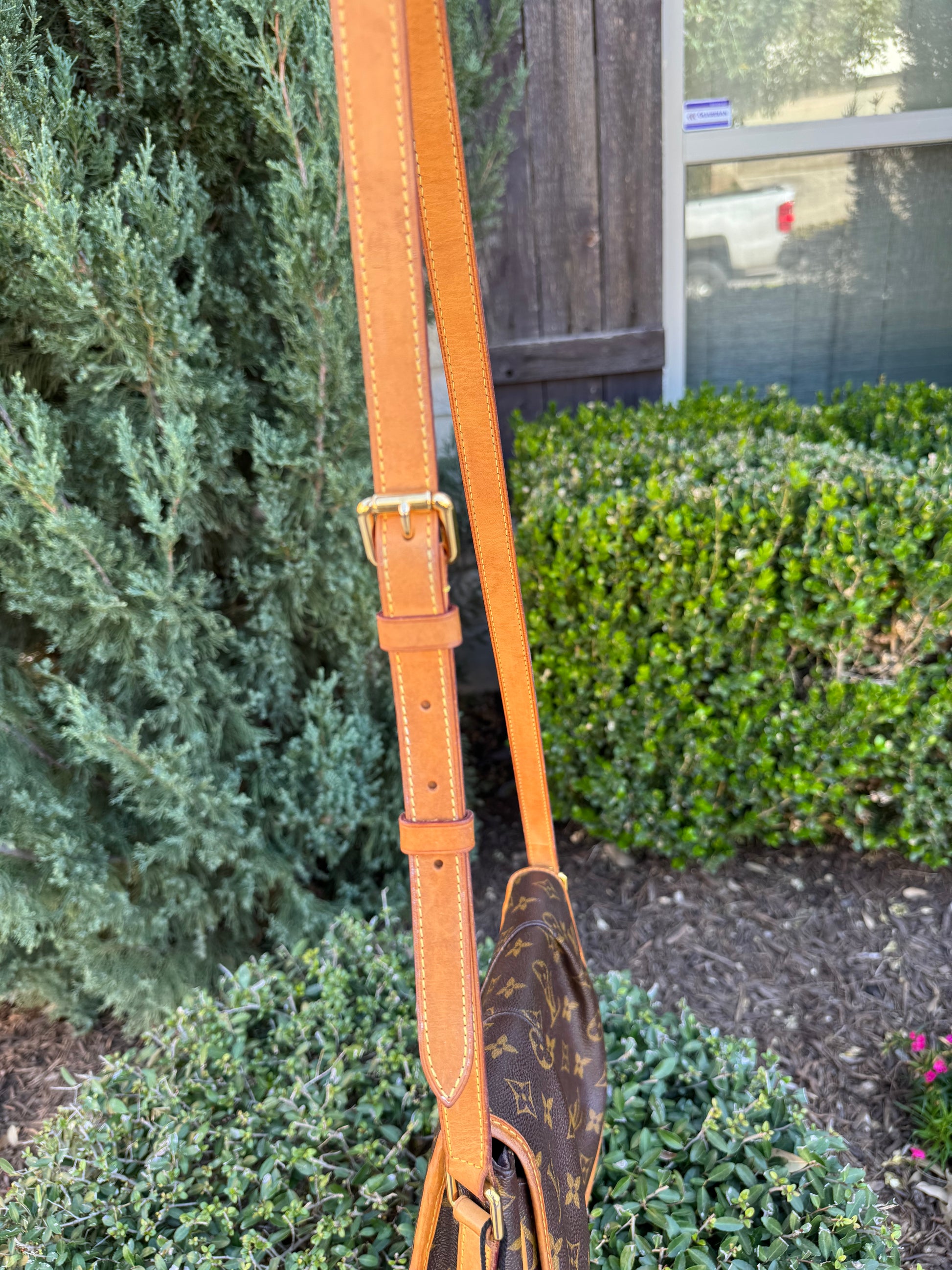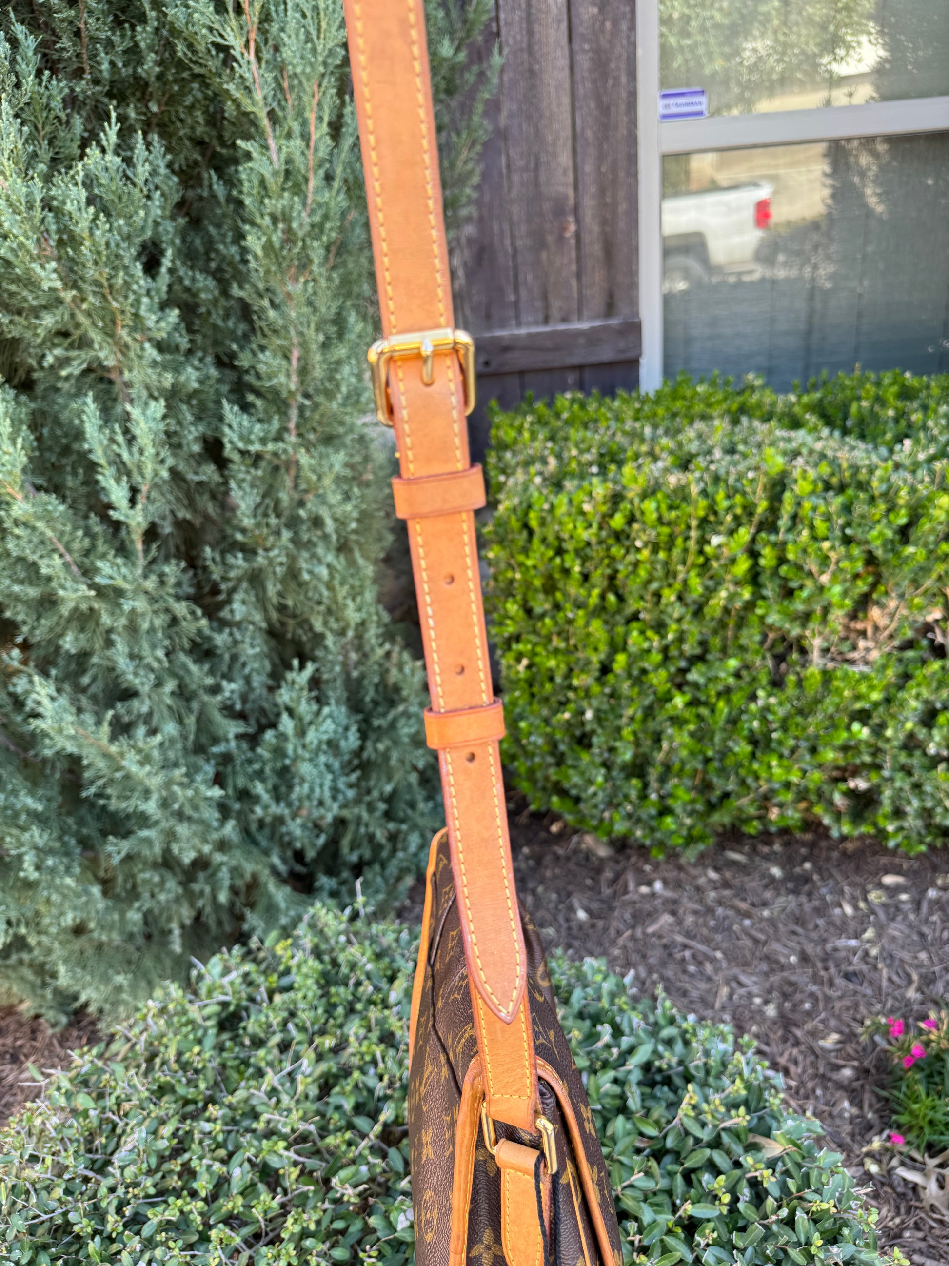- Classic monogram canvas with natural vachetta leather trim