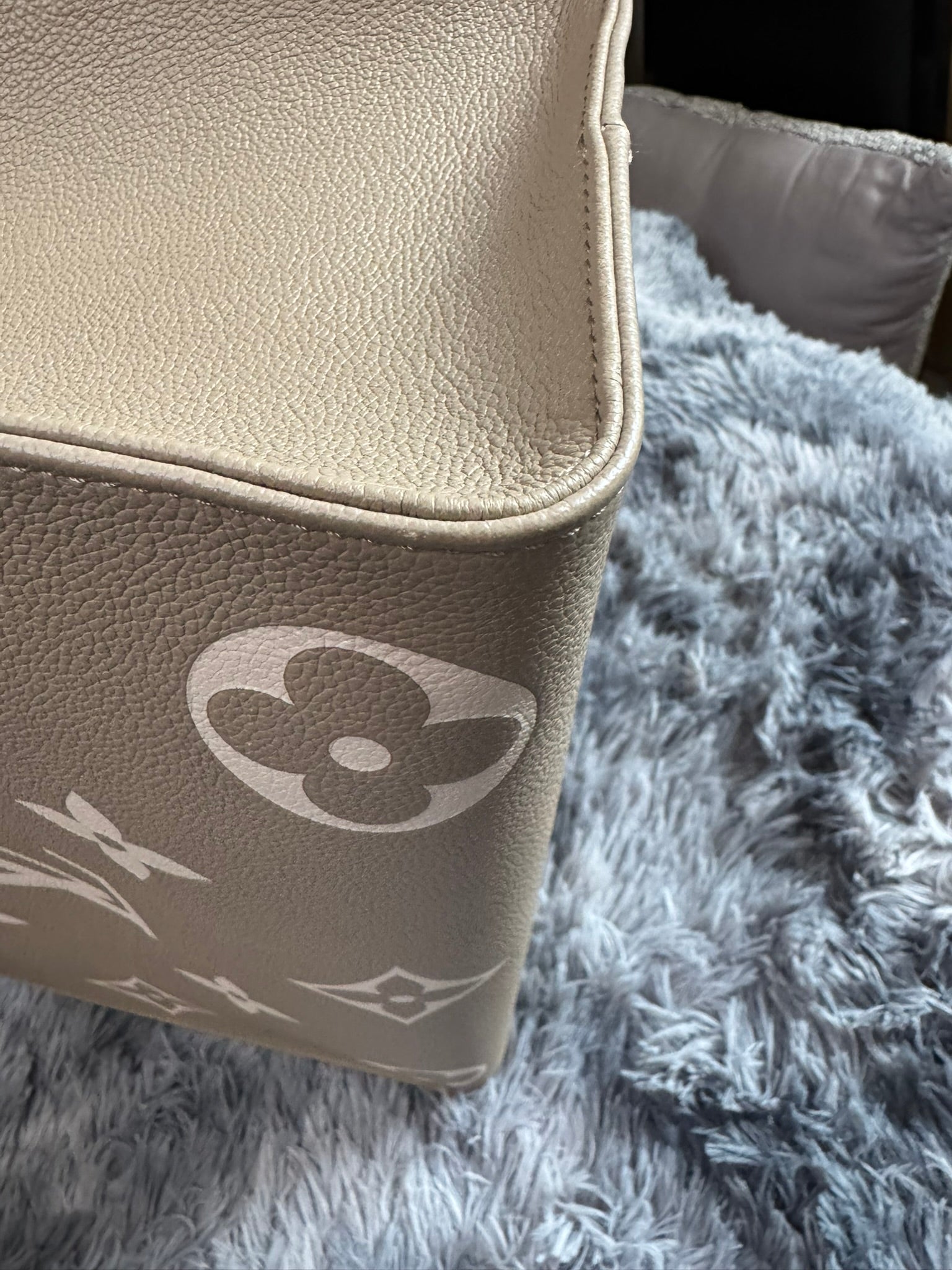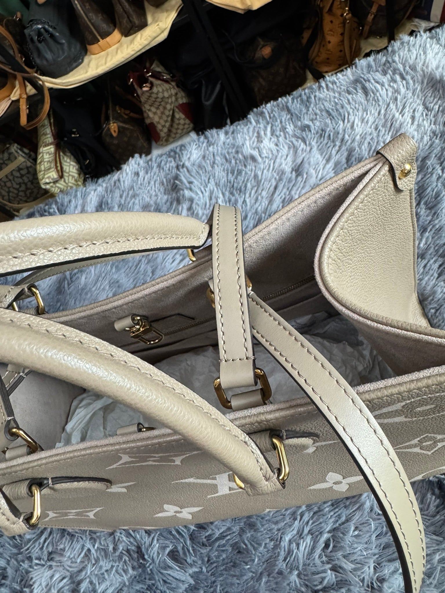 Louis Vuitton OnTheGo MM in Bicolor Monogram Empreinte Leather (Tourterelle/Cream)