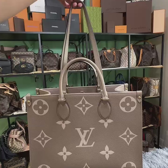 The OnTheGo MM in Bicolor Empreinte is a chic, high-impact statement tote—elevated, easy to carry, and perfect for both daily use and polished occasions.