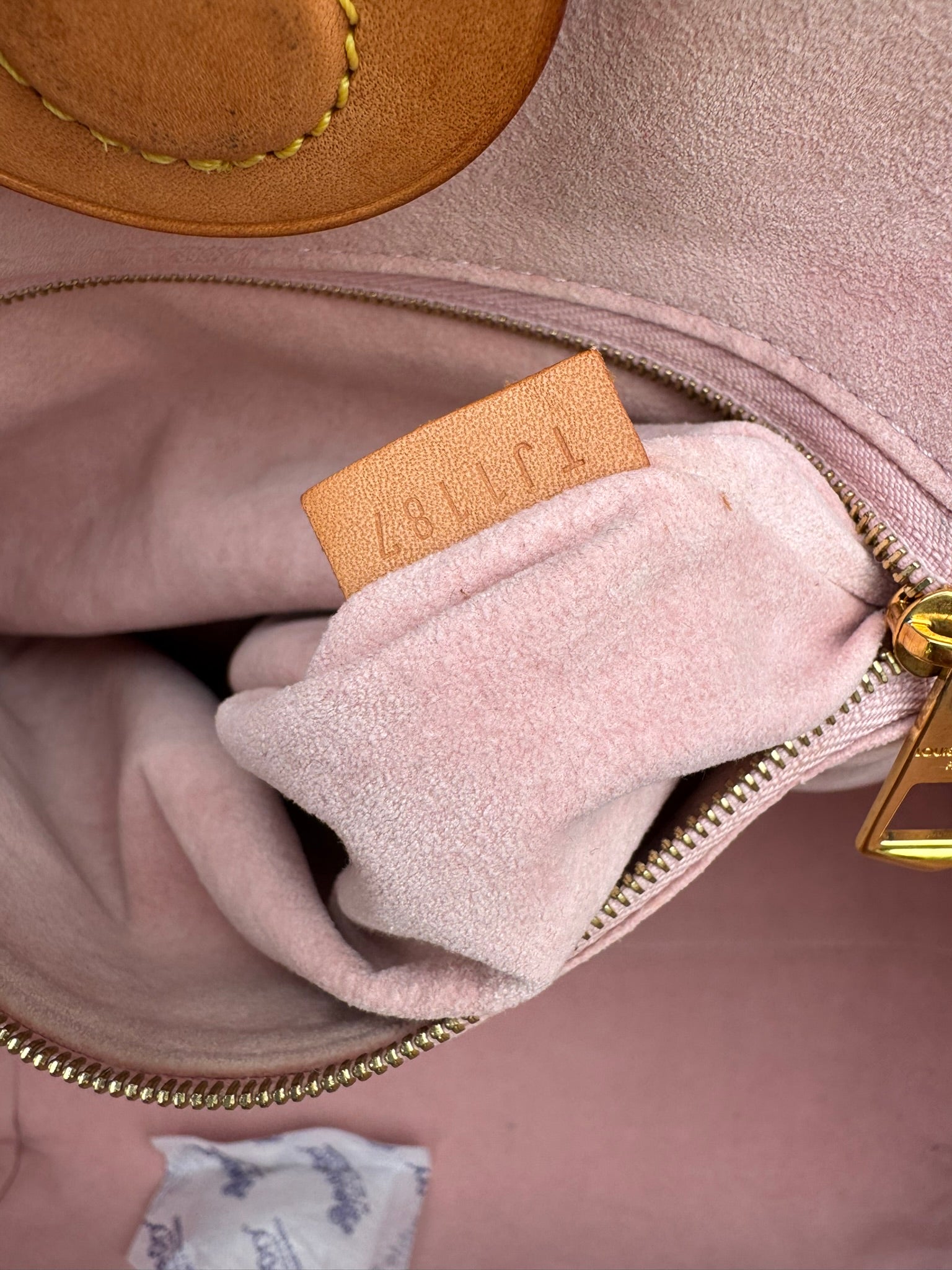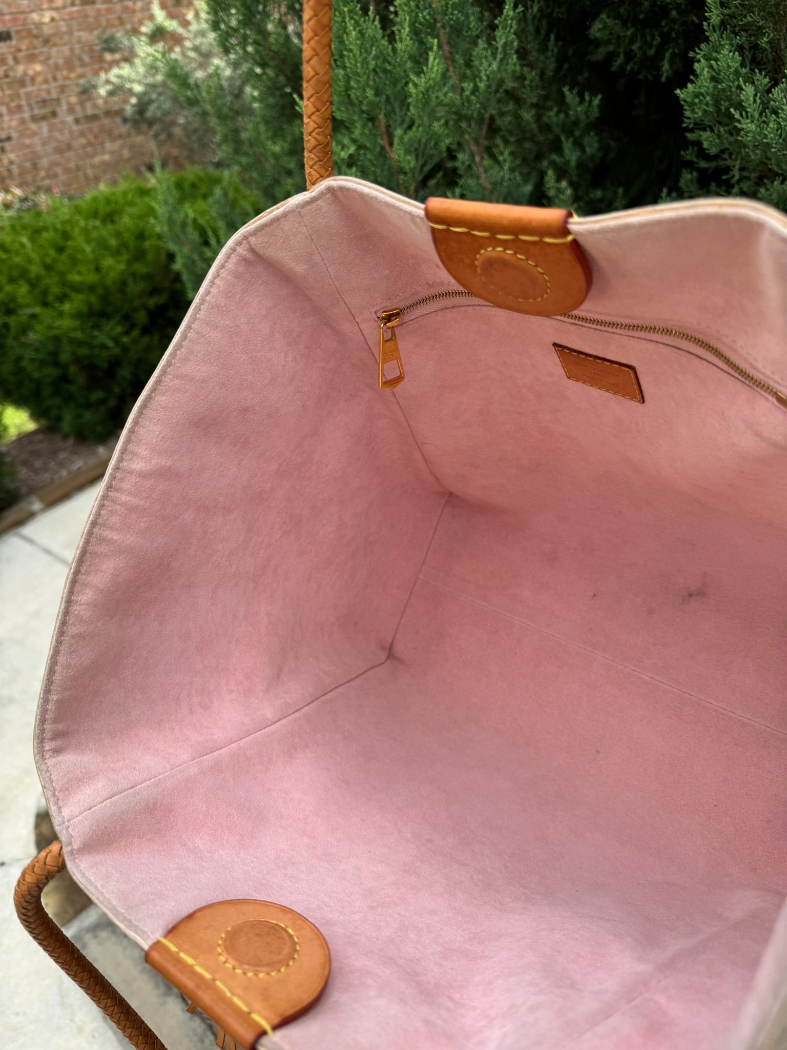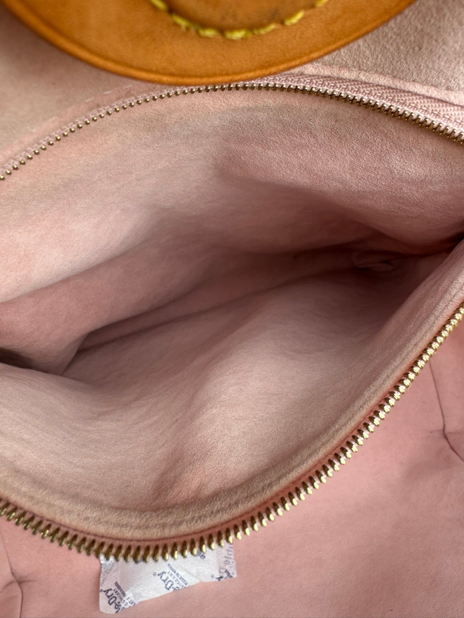 - Vachetta leather has a honey light patina, with light watermarks and mild corner rubs