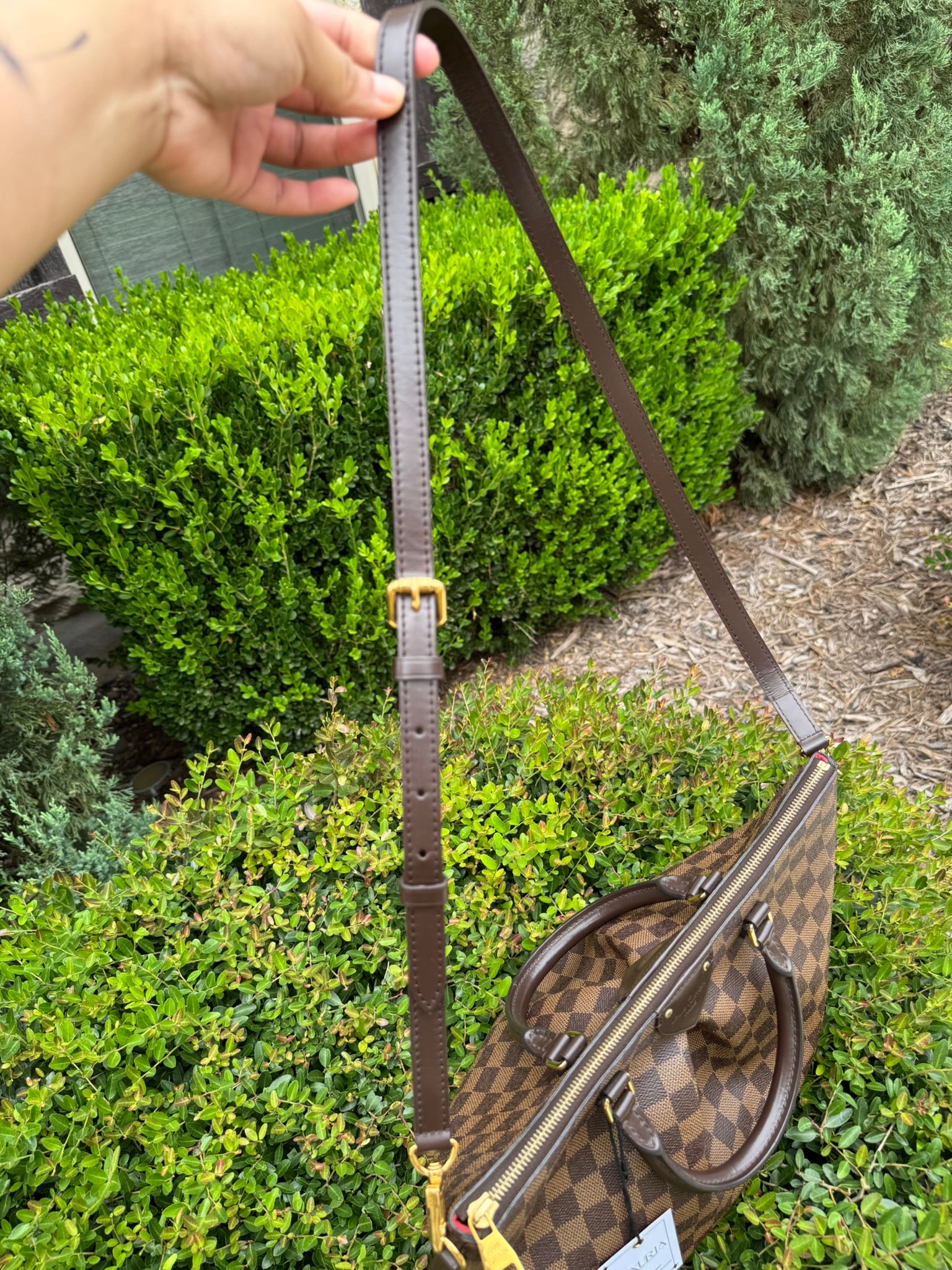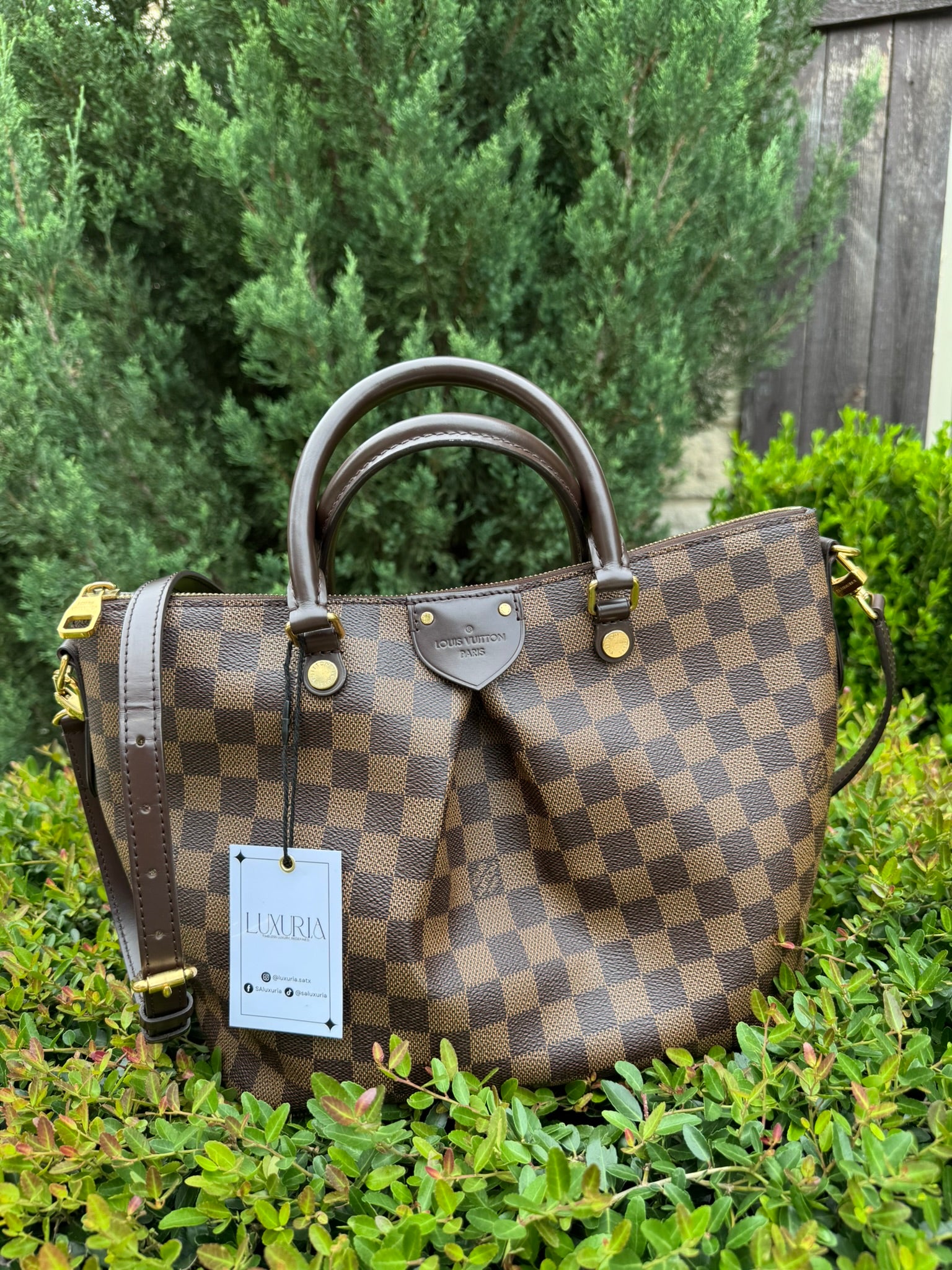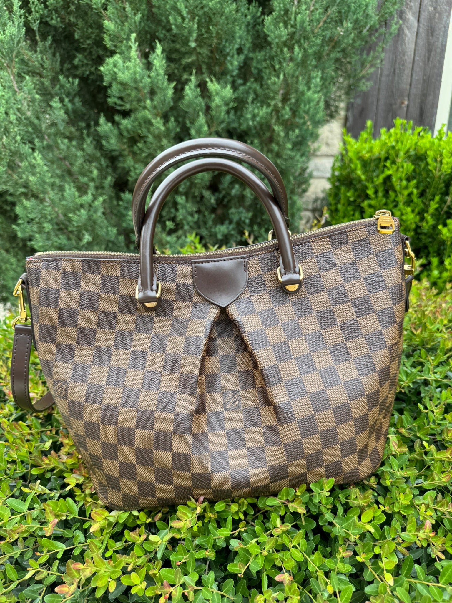 The Siena MM is a feminine, structured tote that blends the elegance of the Damier Ebene pattern with practical everyday function. With its pleated silhouette, lightweight build, and removable strap, this bag transitions easily from shoulder to crossbody wear—perfect for both work and casual outings.