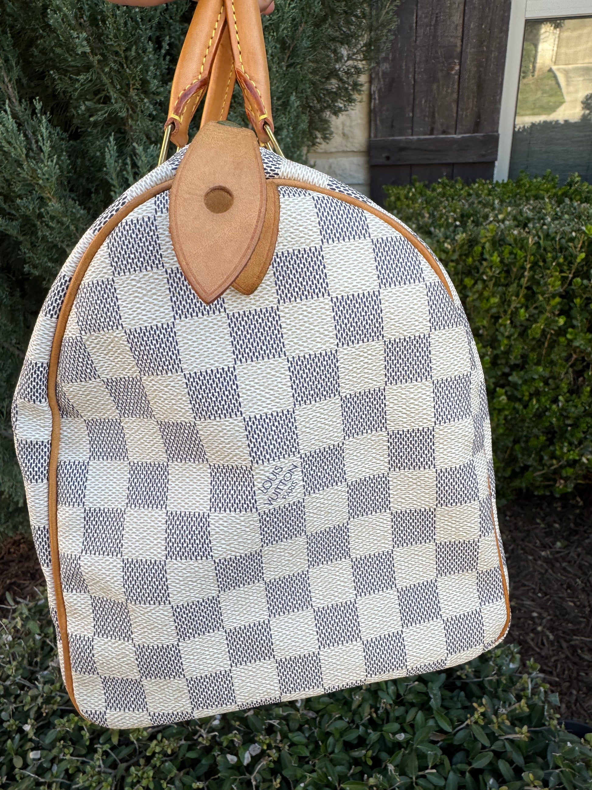 The Louis Vuitton Speedy 30 in Damier Azur is a timeless investment piece, known for its elegance, durability, and everyday practicality.