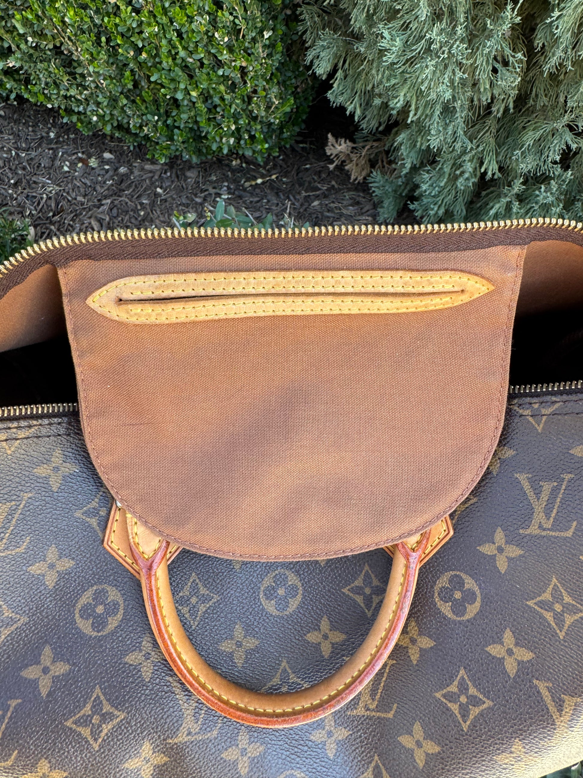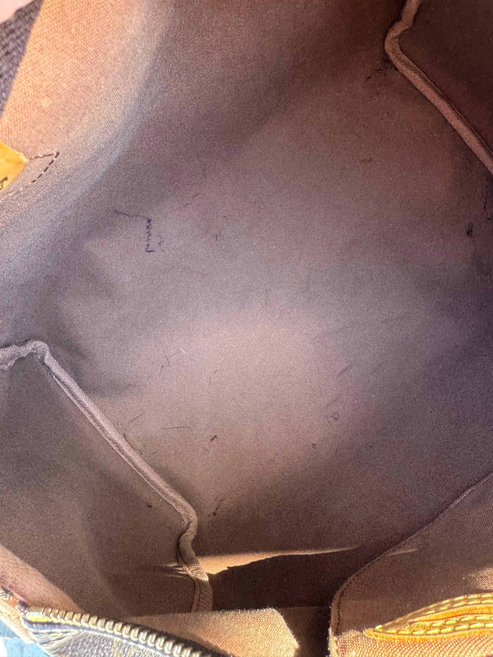 - Vachetta leather has a honey patina with light watermarks, complementing the Monogram canvas beautifully