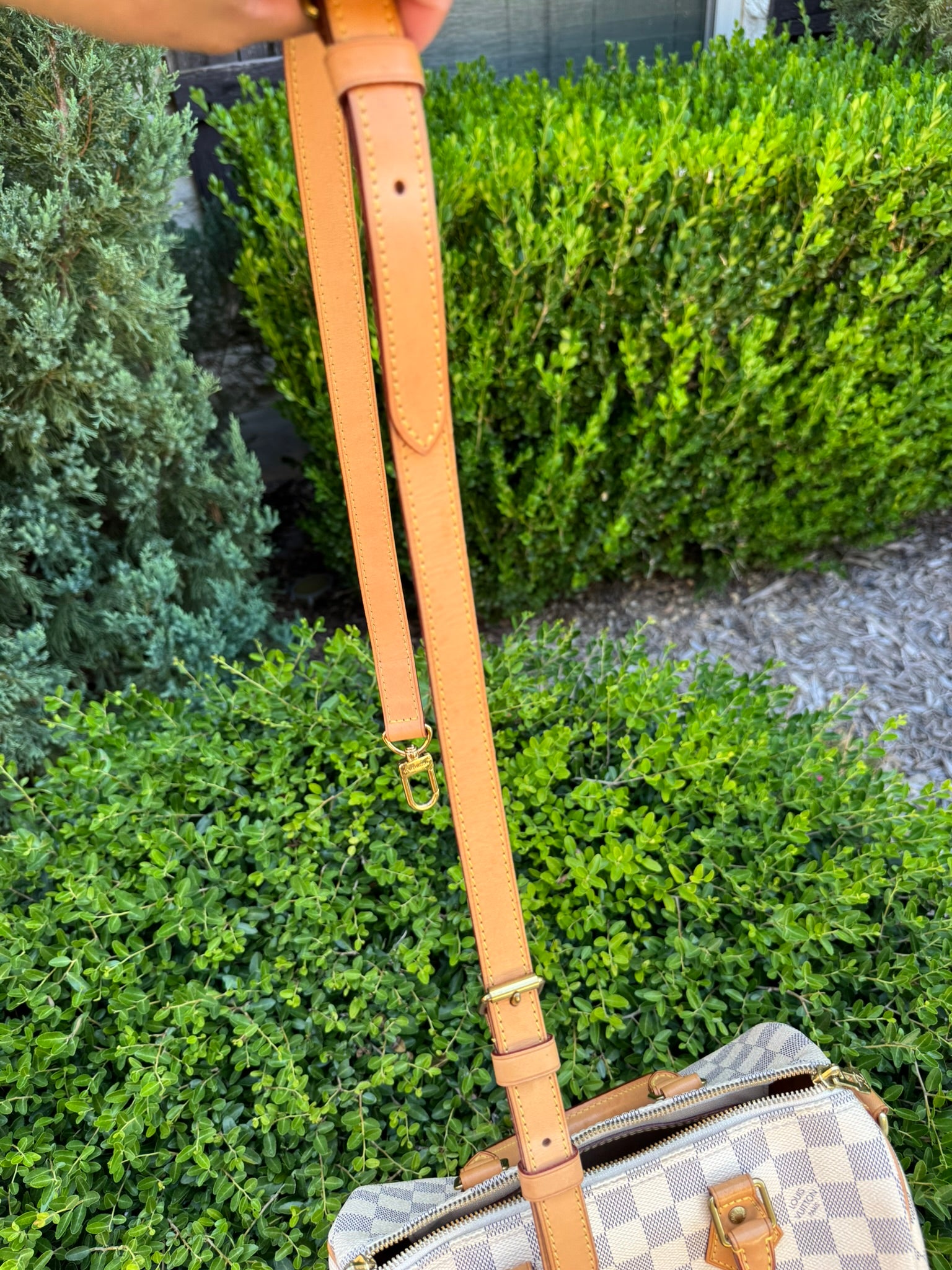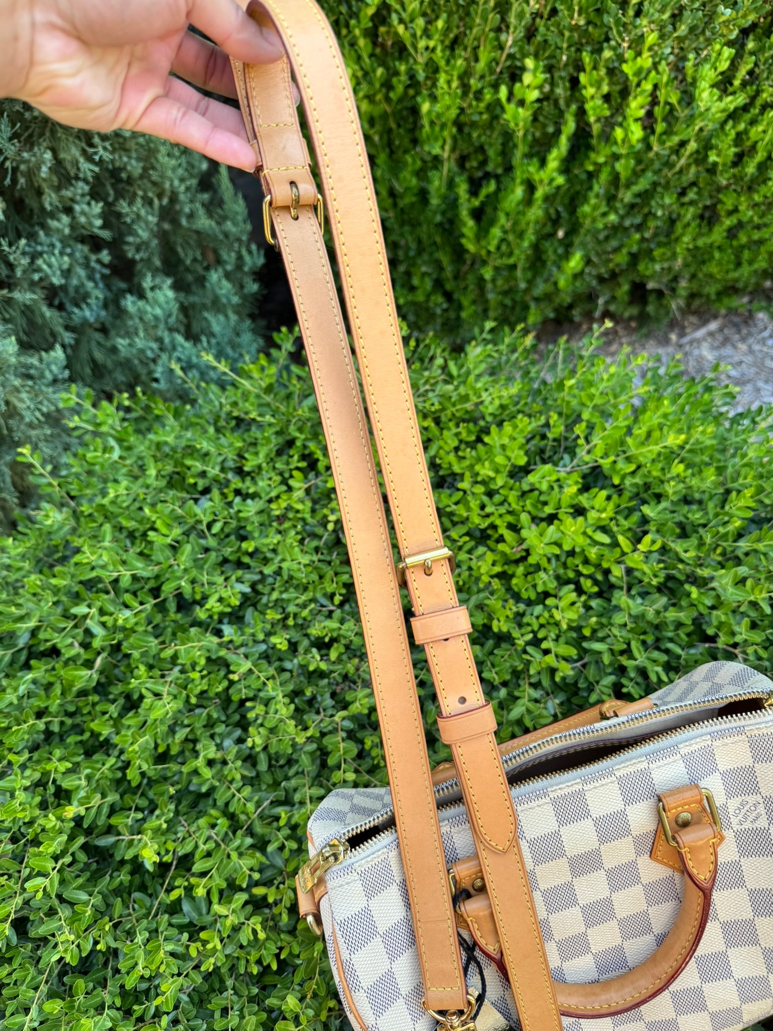 - Vachetta leather shows very light watermarks