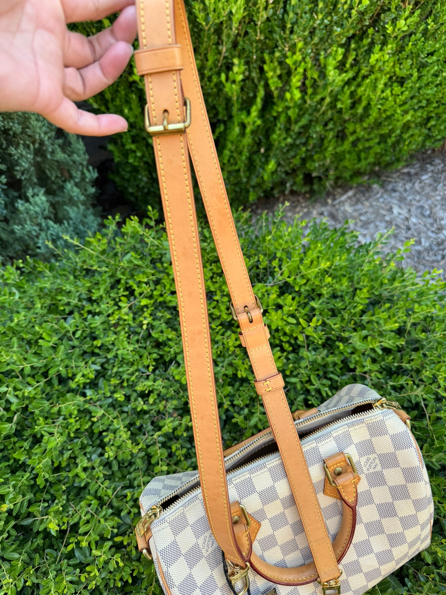 The Speedy Bandoulière 25 offers all the elegance of Louis Vuitton’s iconic Speedy, with the added convenience of a removable and adjustable strap for shoulder or crossbody wear. Crafted in Damier Azur coated canvas with natural vachetta leather trim, it’s the perfect grab-and-go piece for everyday use.