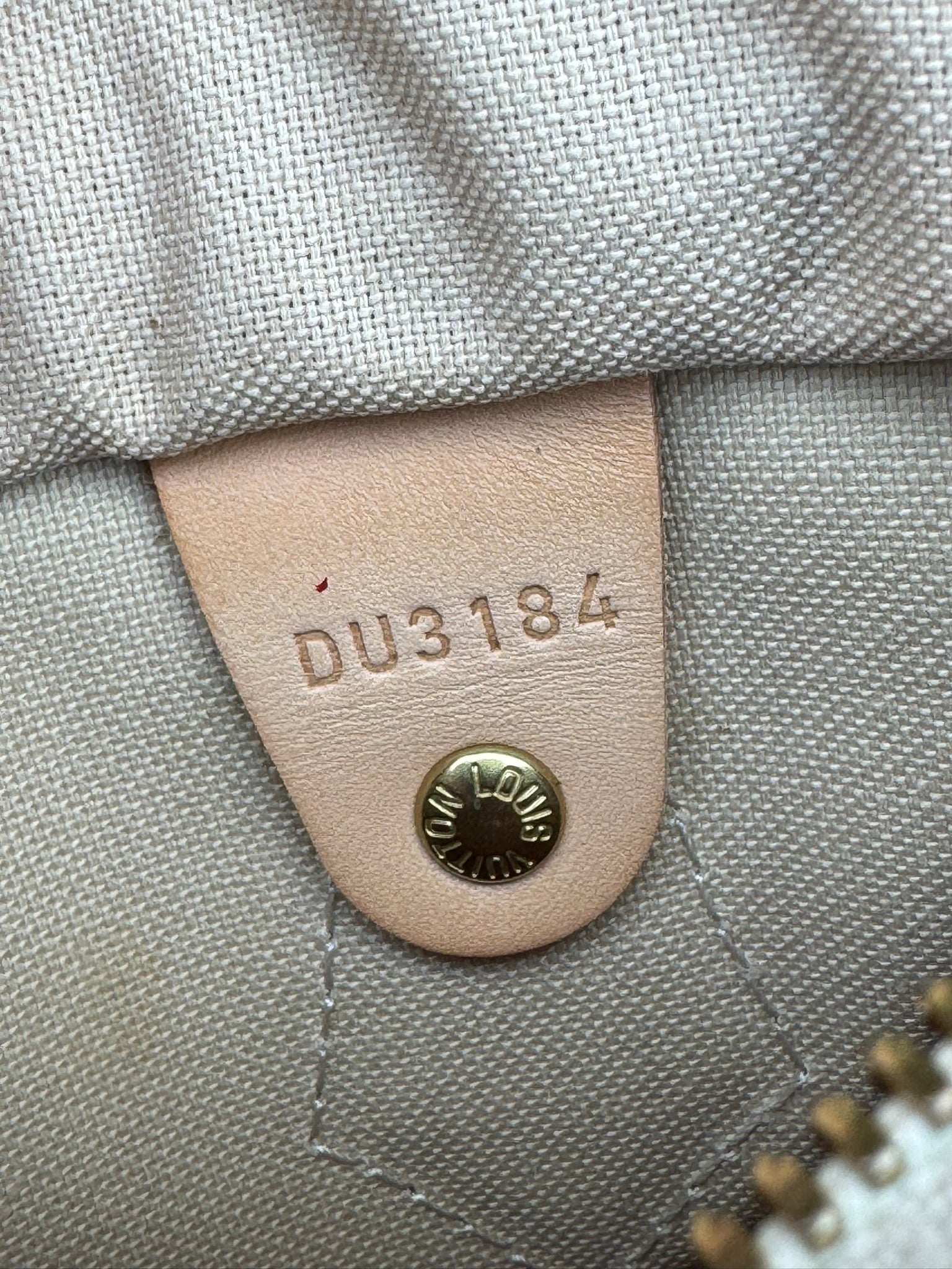 - Damier Azur coated canvas with natural cowhide leather trim
