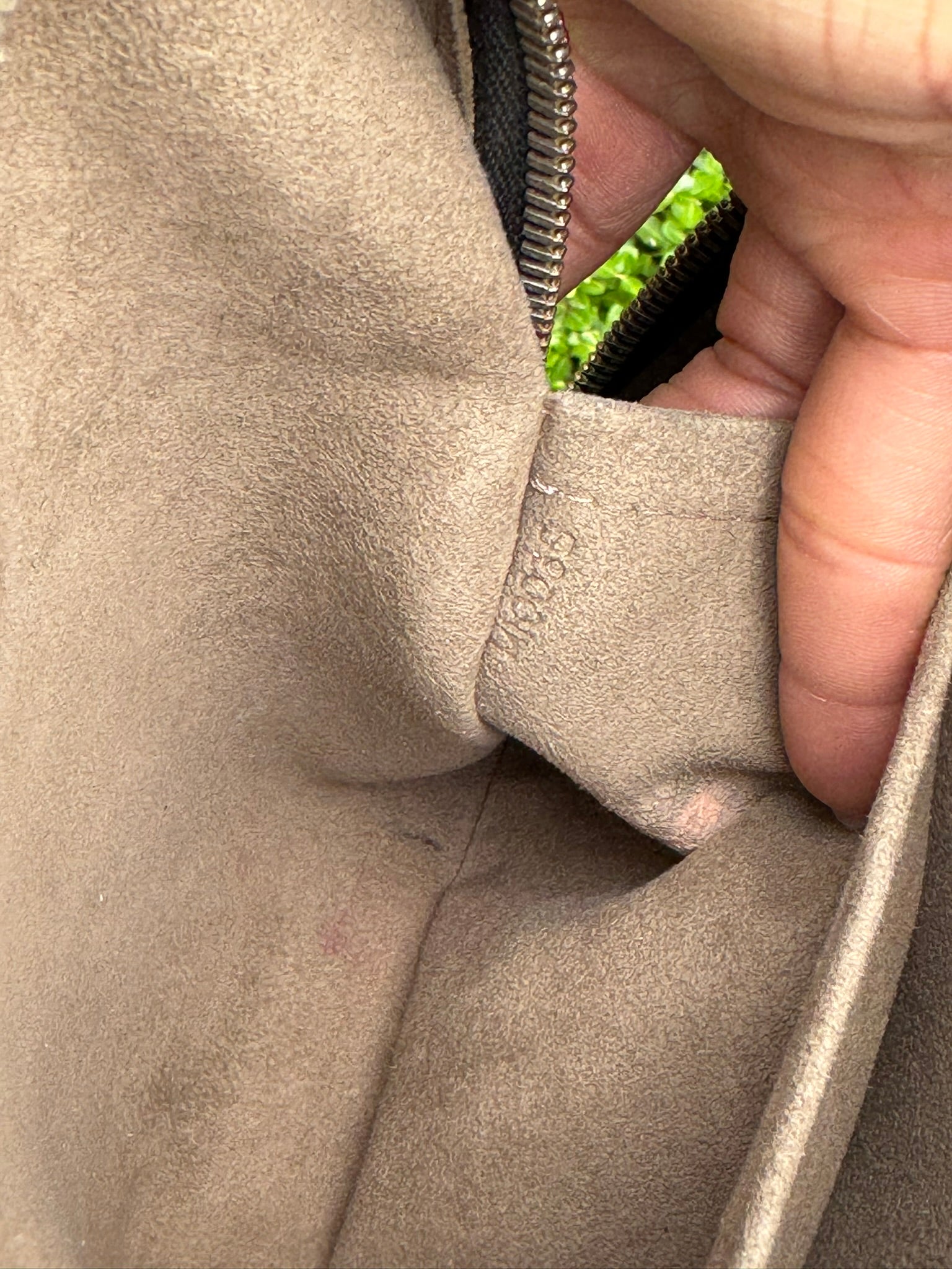 - Zippers function smoothly, gold-tone hardware has minor scratches but no tarnishing