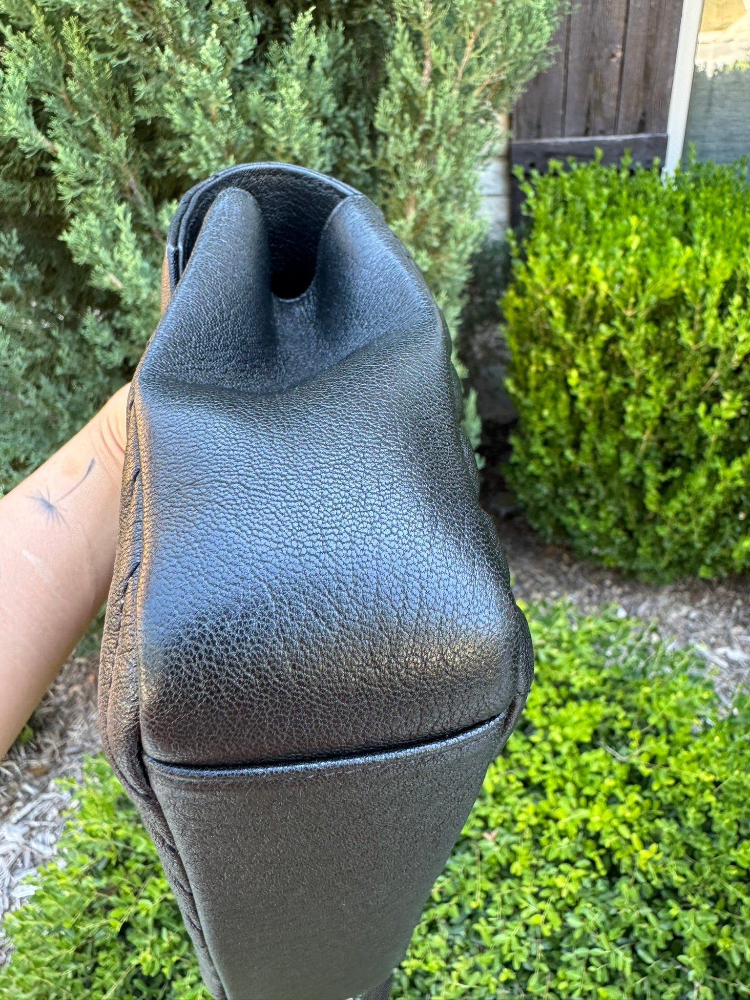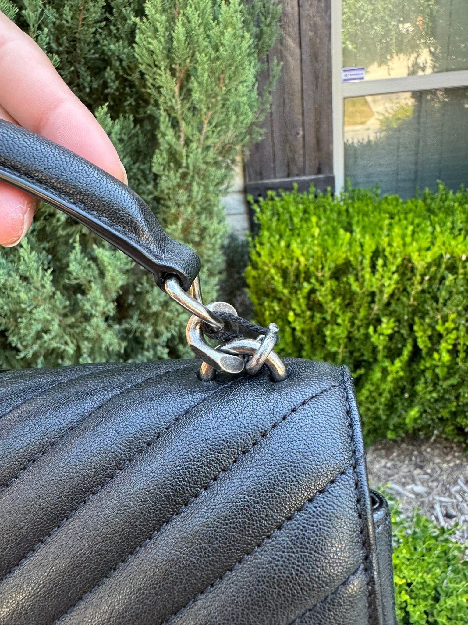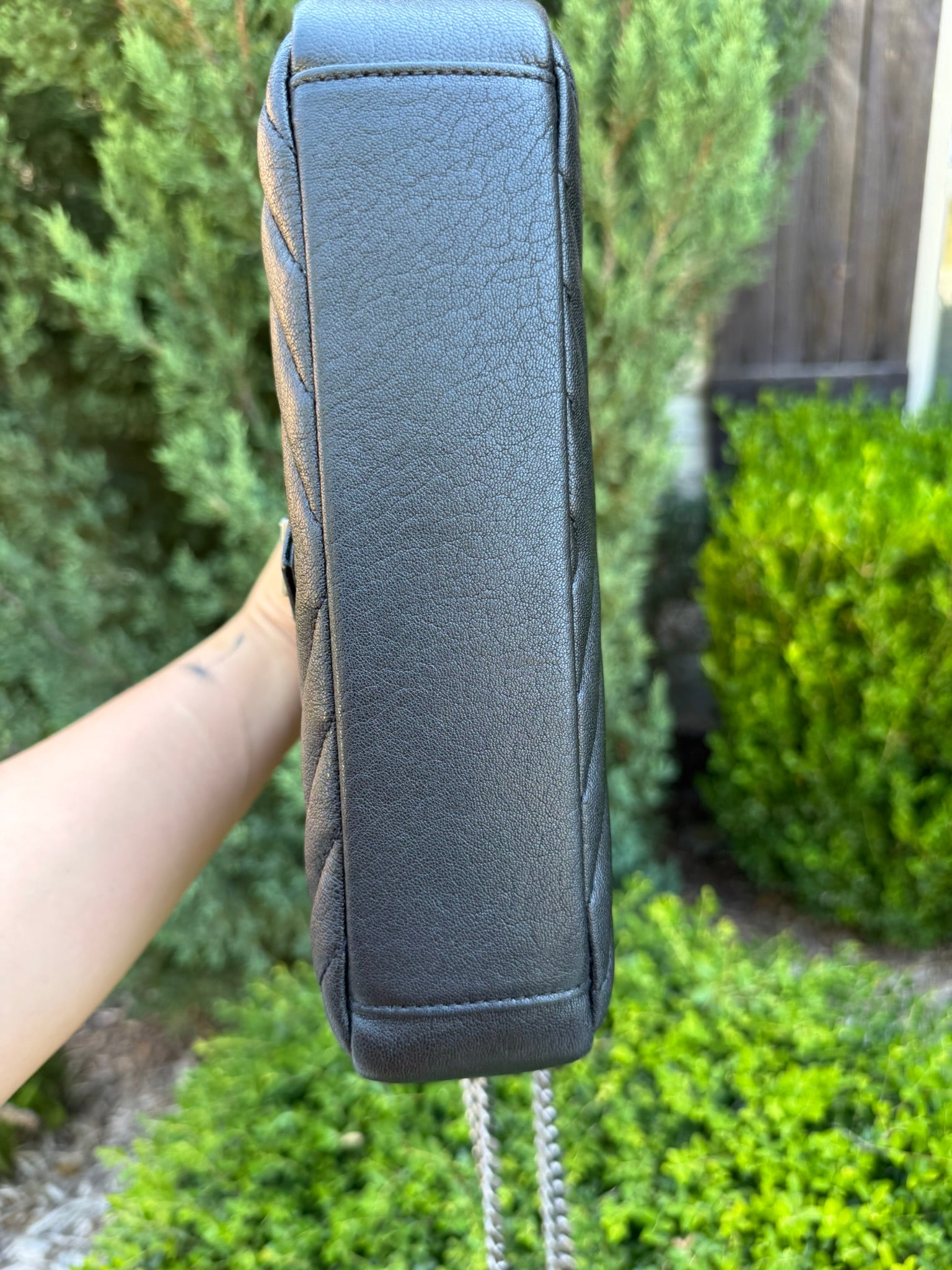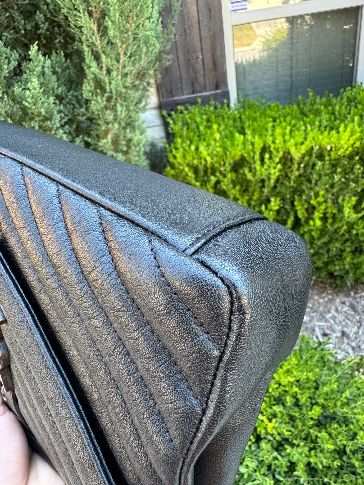 - Chevron-quilted leather exterior