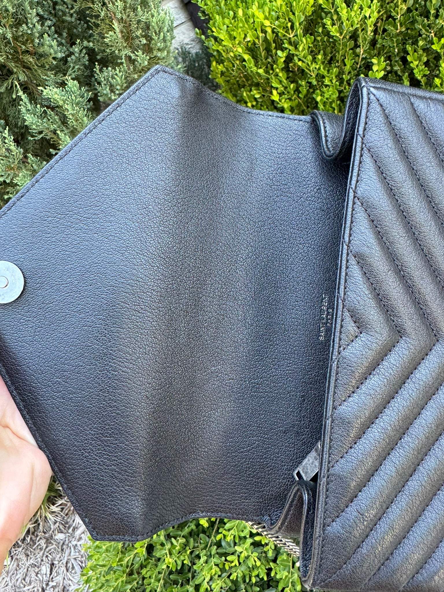 - Signature interlocking YSL logo on flap